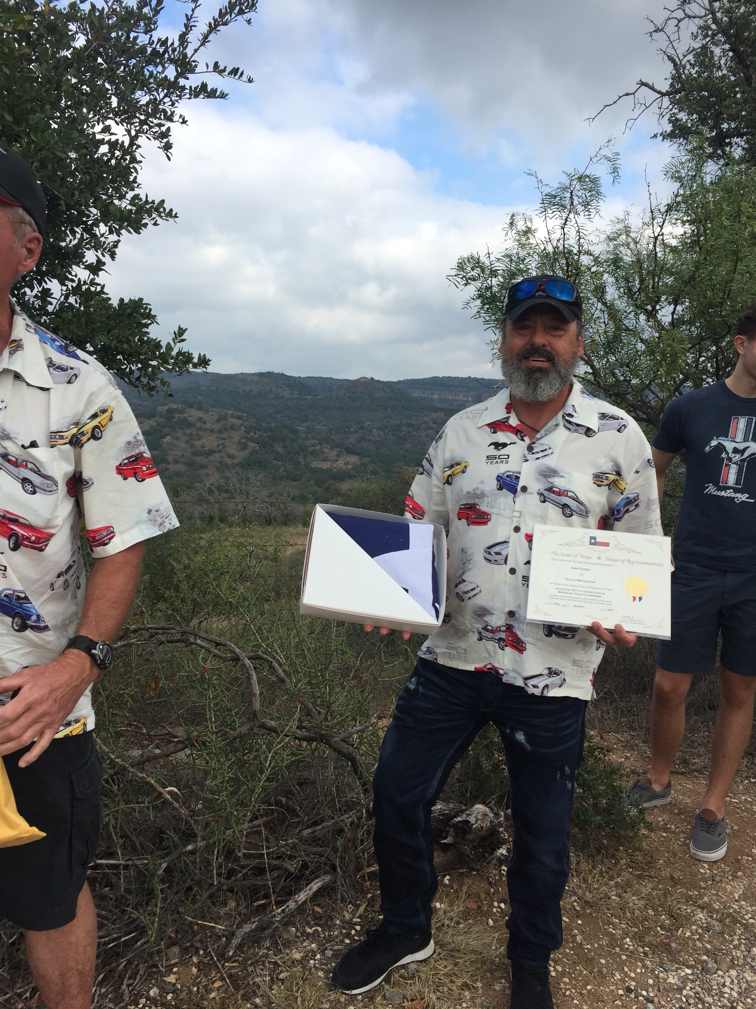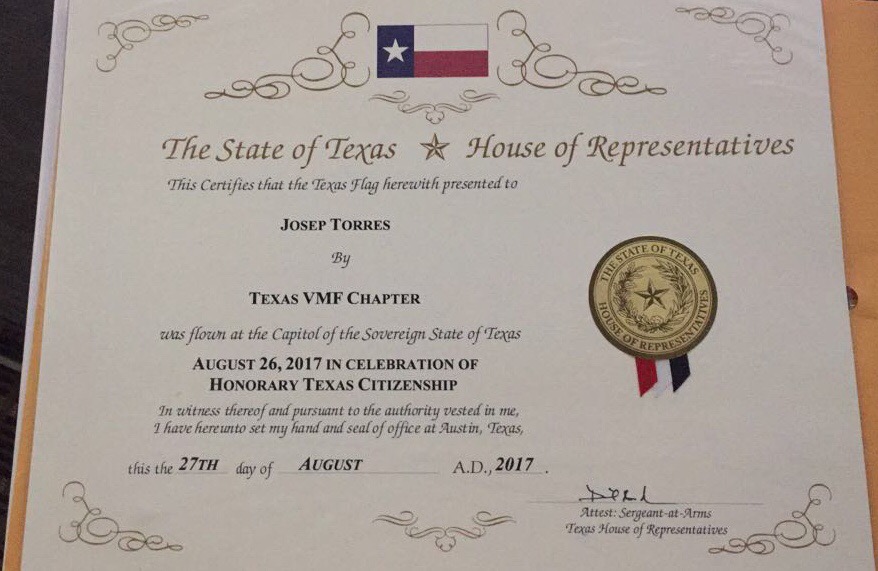 He had a great surprise for us, I was honored with a Texas flag that has been flown in Austin Capitol building on August 26th 2017 (Susana’s birthday) So I became a Honorary Texan, because I shoot guns, drive Mustangs, drink Lone Star beer and wear caps.! I am very proud to be a Texan adopted citizen.!