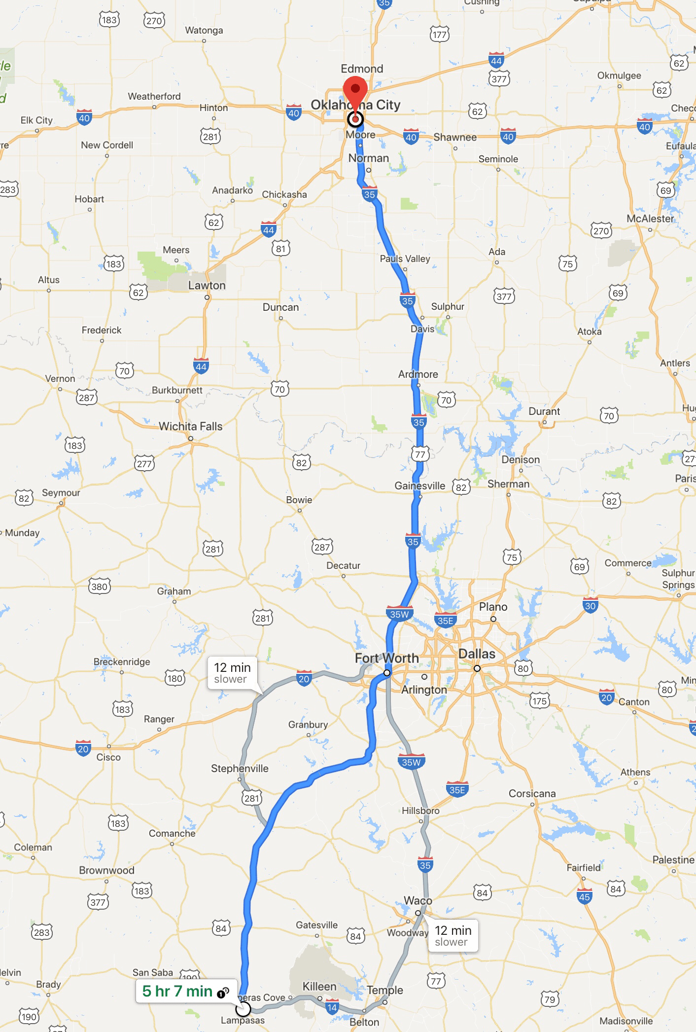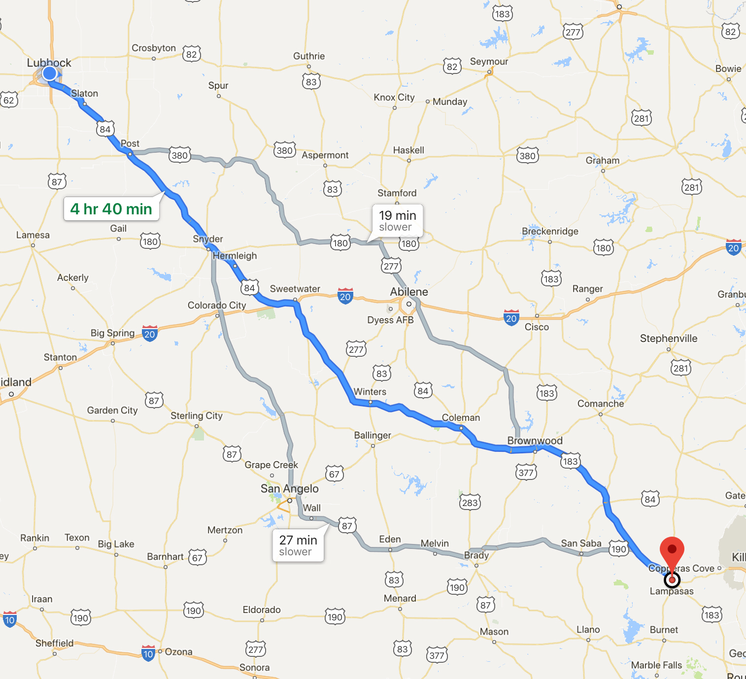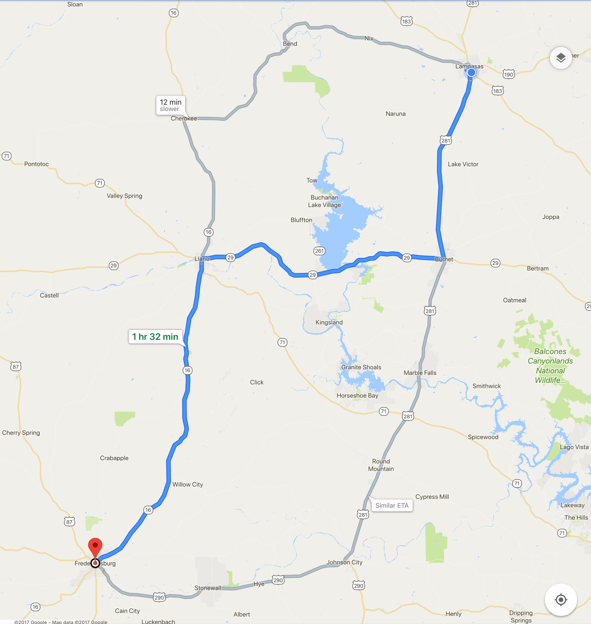 Route from Lampasas to Fredericksburg