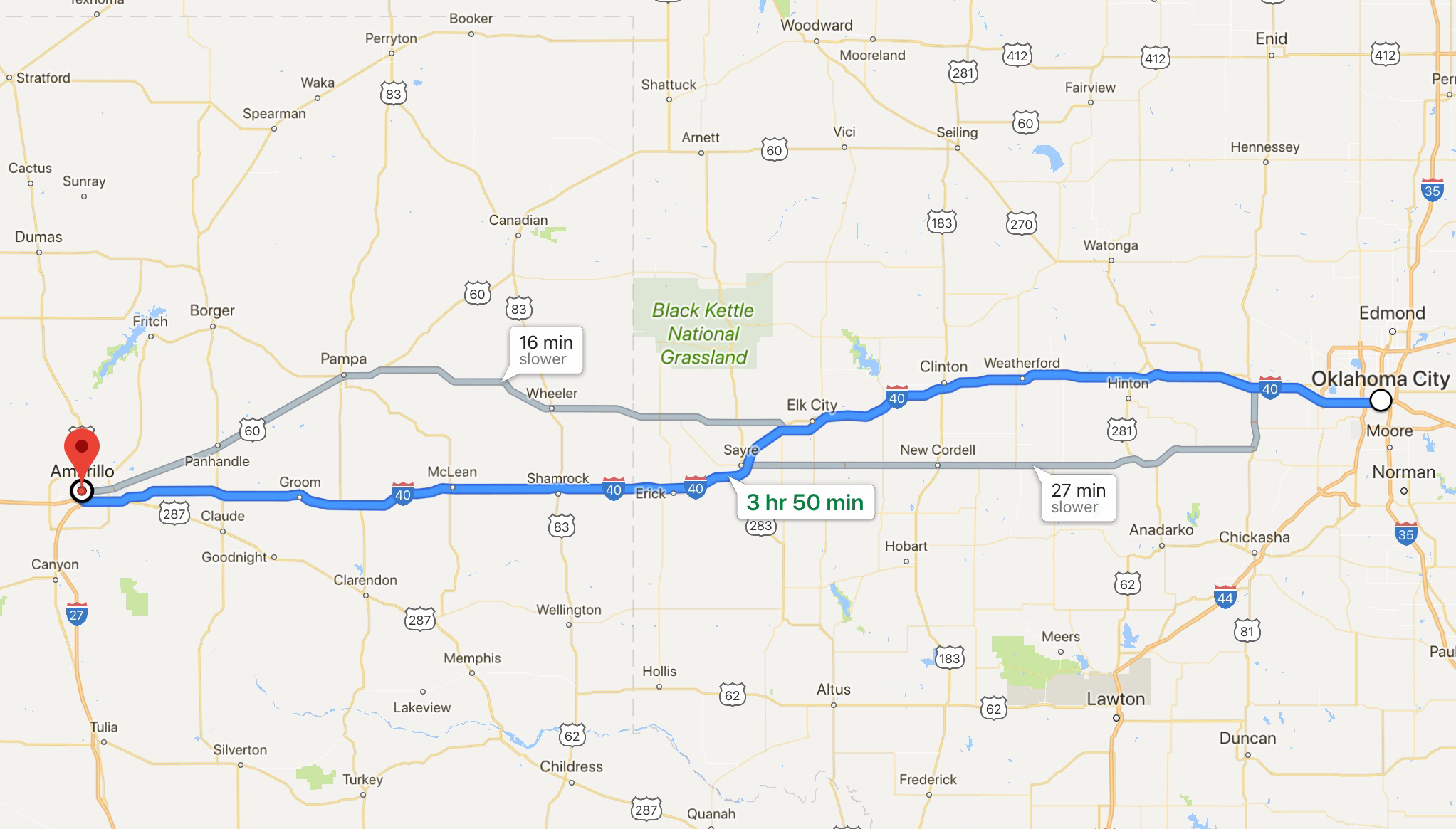 Refilling the tanks in Oklahoma, after crossing the state border