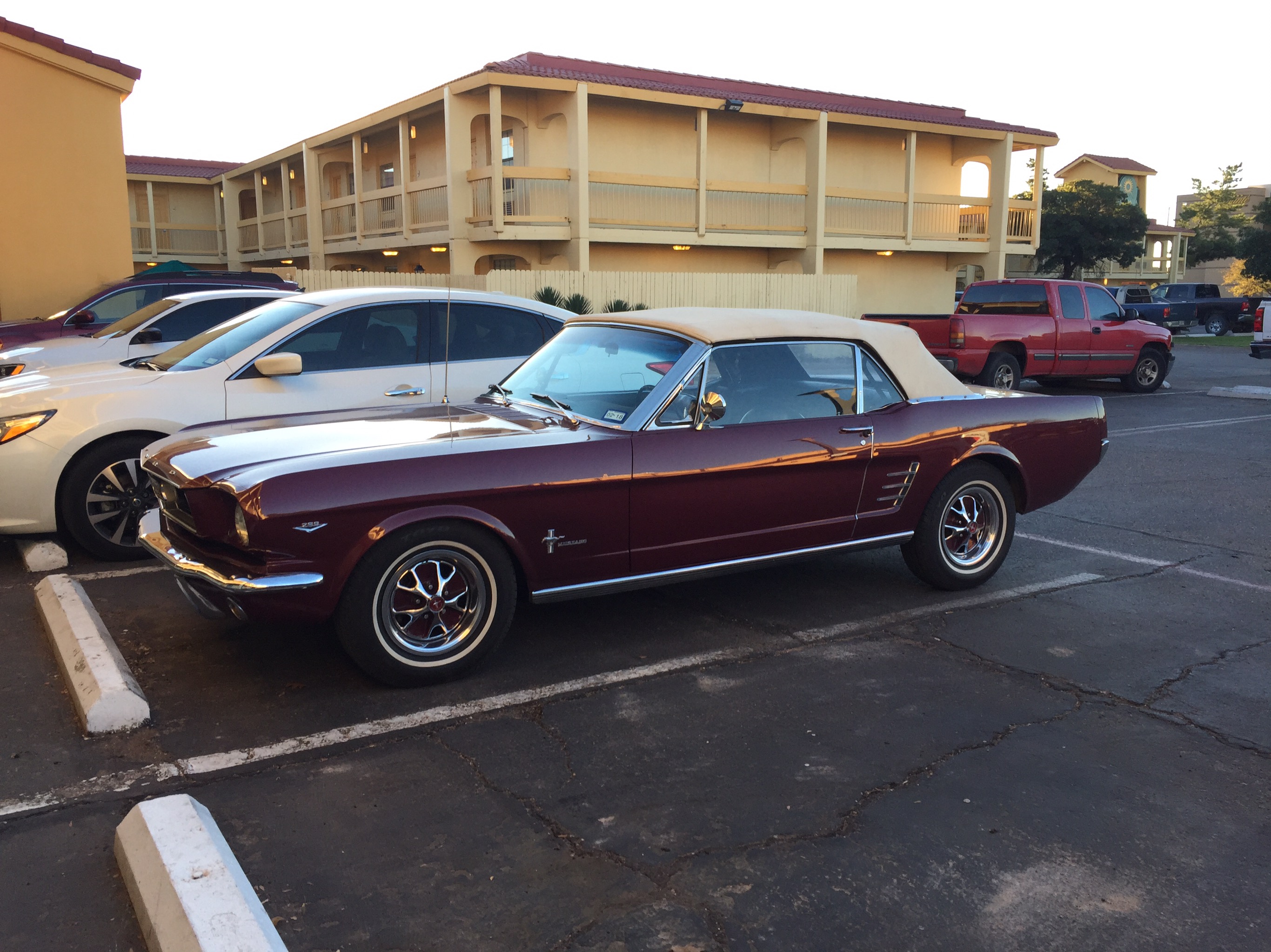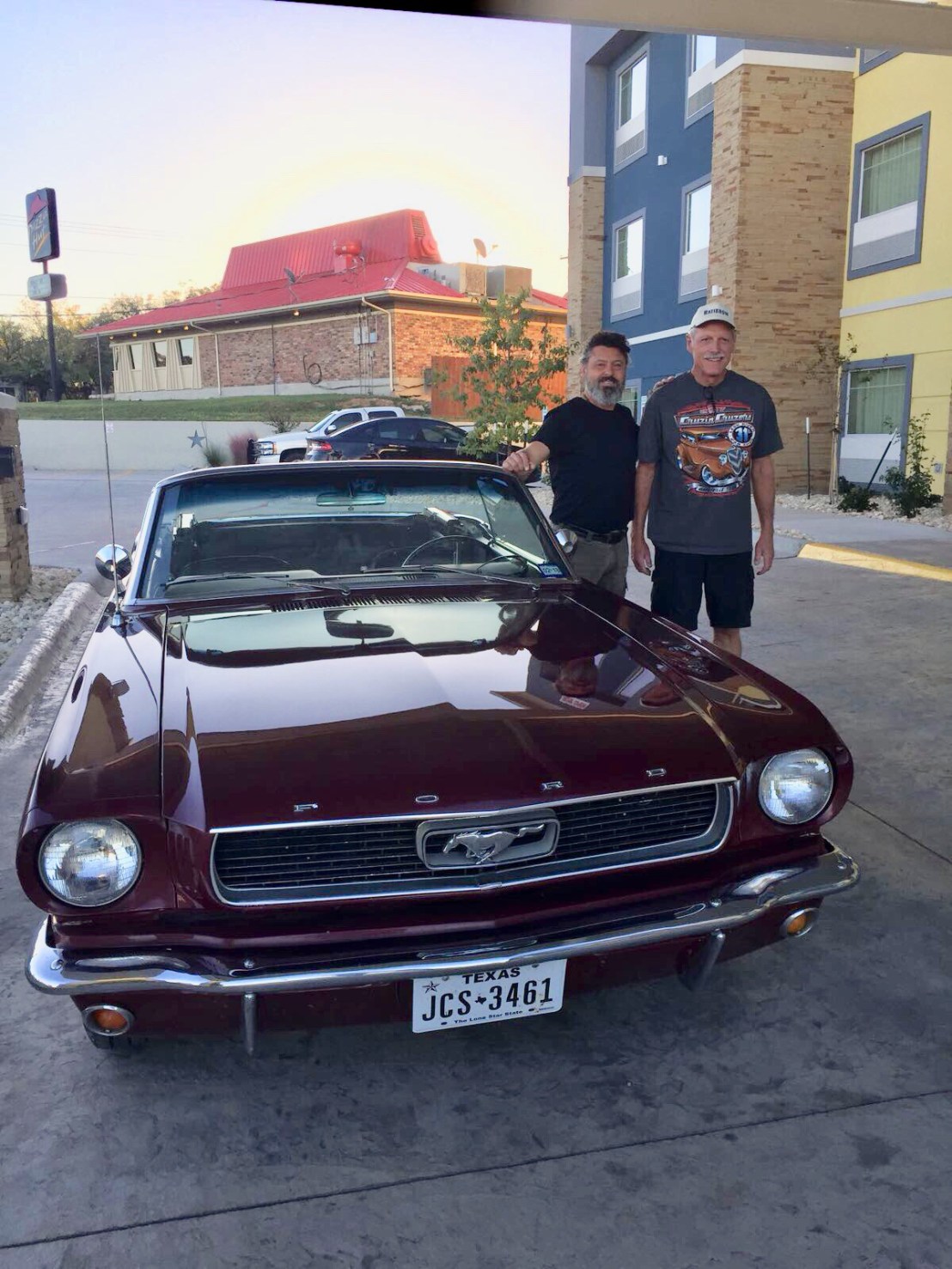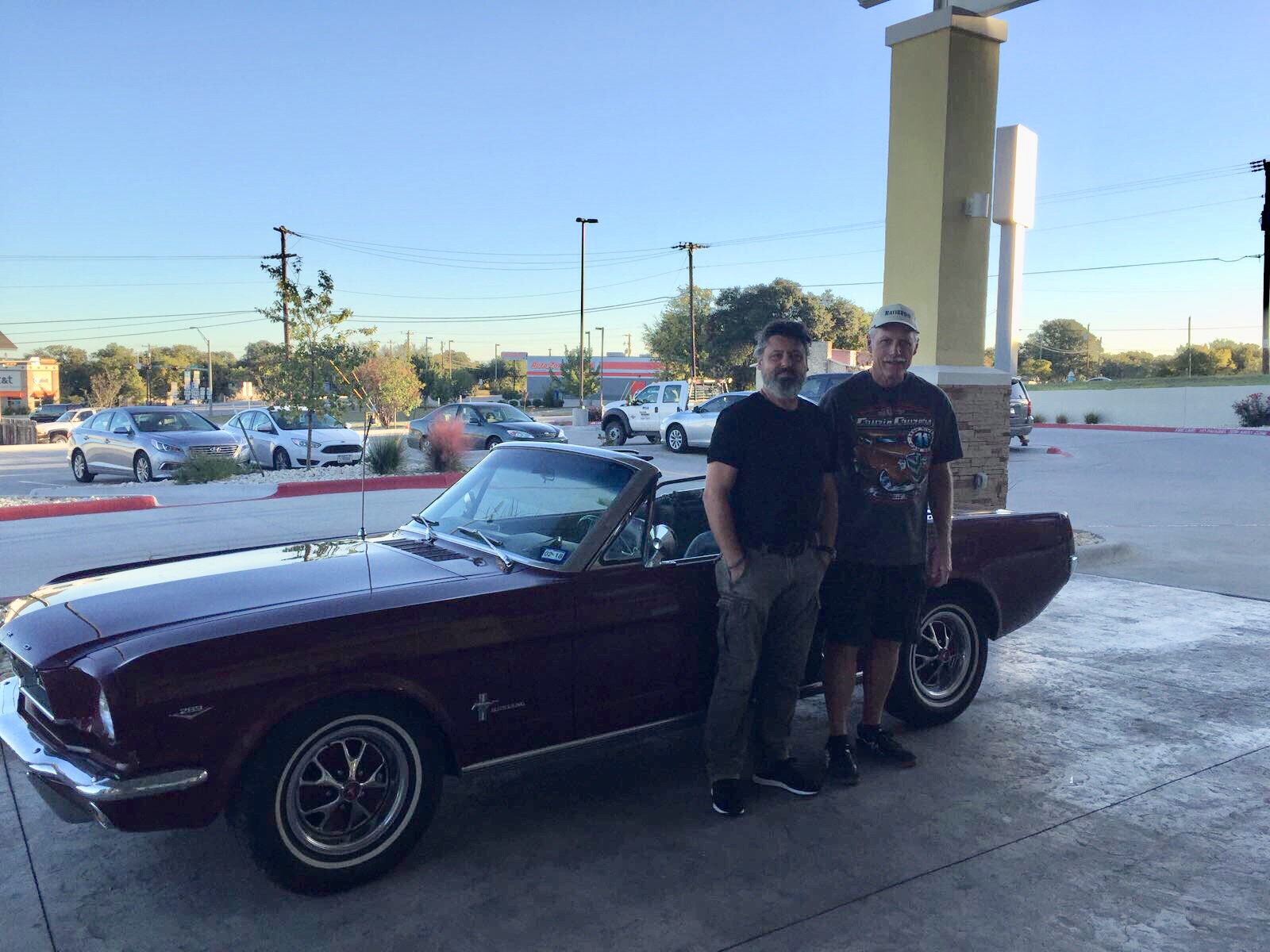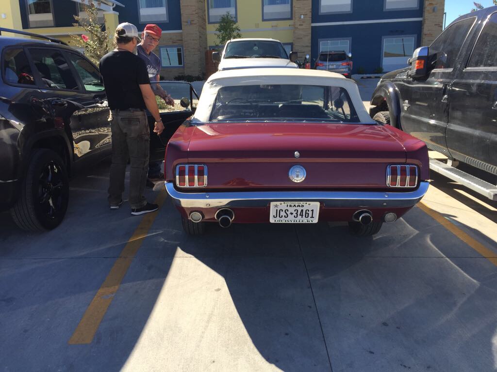 My very good friend Alan (whom I have never met in person before!) will be waiting there, and will bring us to Lampasas, where we will be based. Alan is taking good care of my car, a Vintage Burgundy 1966 Ford Mustang 289 C-code Convertible that I bought last February, and that he kindly brought home after putting 1300+ miles on the clock himself driving it from Grand Rapids, MI to Lampasas, TX.! The car is stored in his shop and within this time, he has been doing some maintenance for me, well, much more than that I would say.! The car is in pristine condition, inspected, insured and registered under my name, so ready to go.!