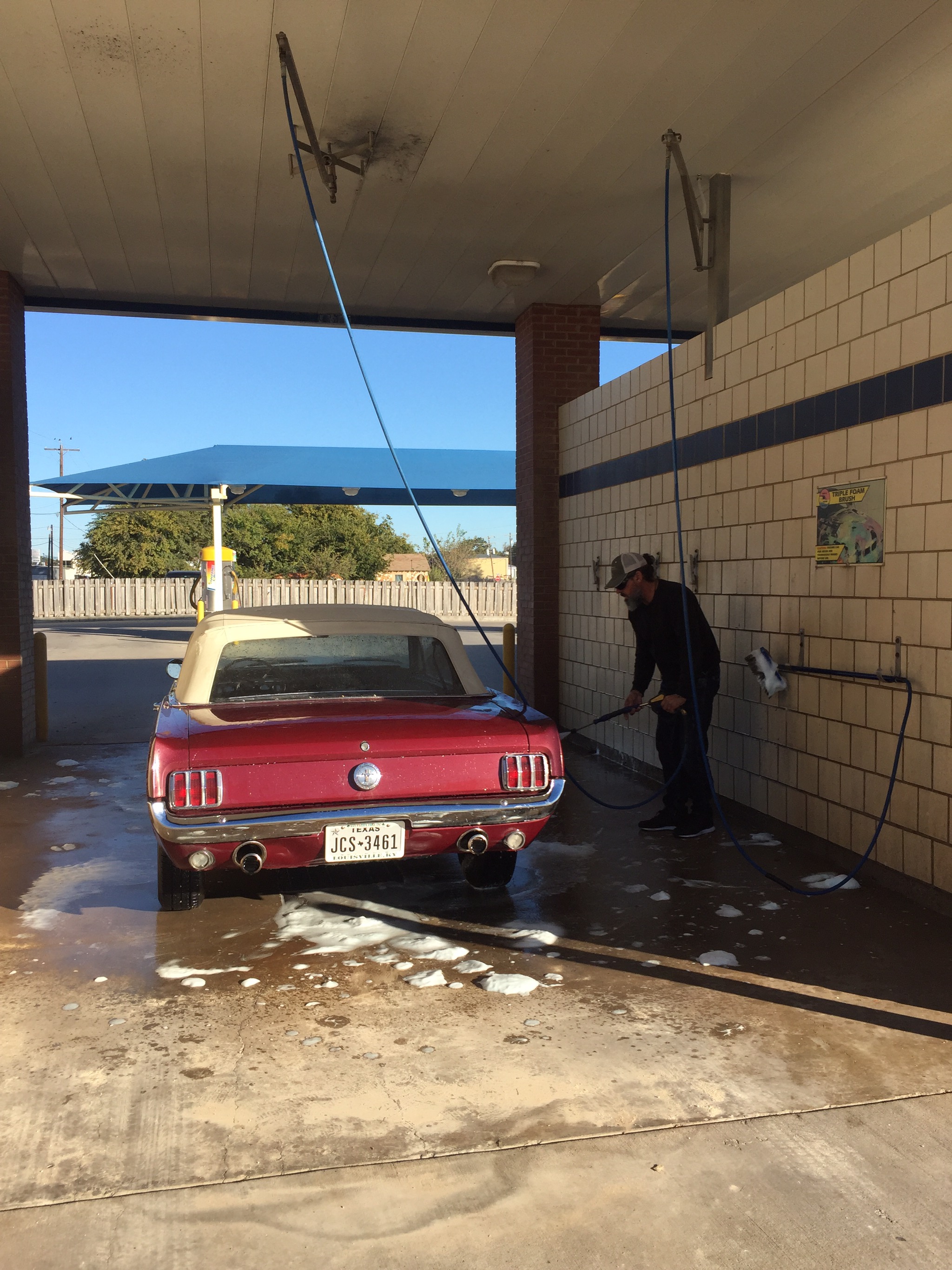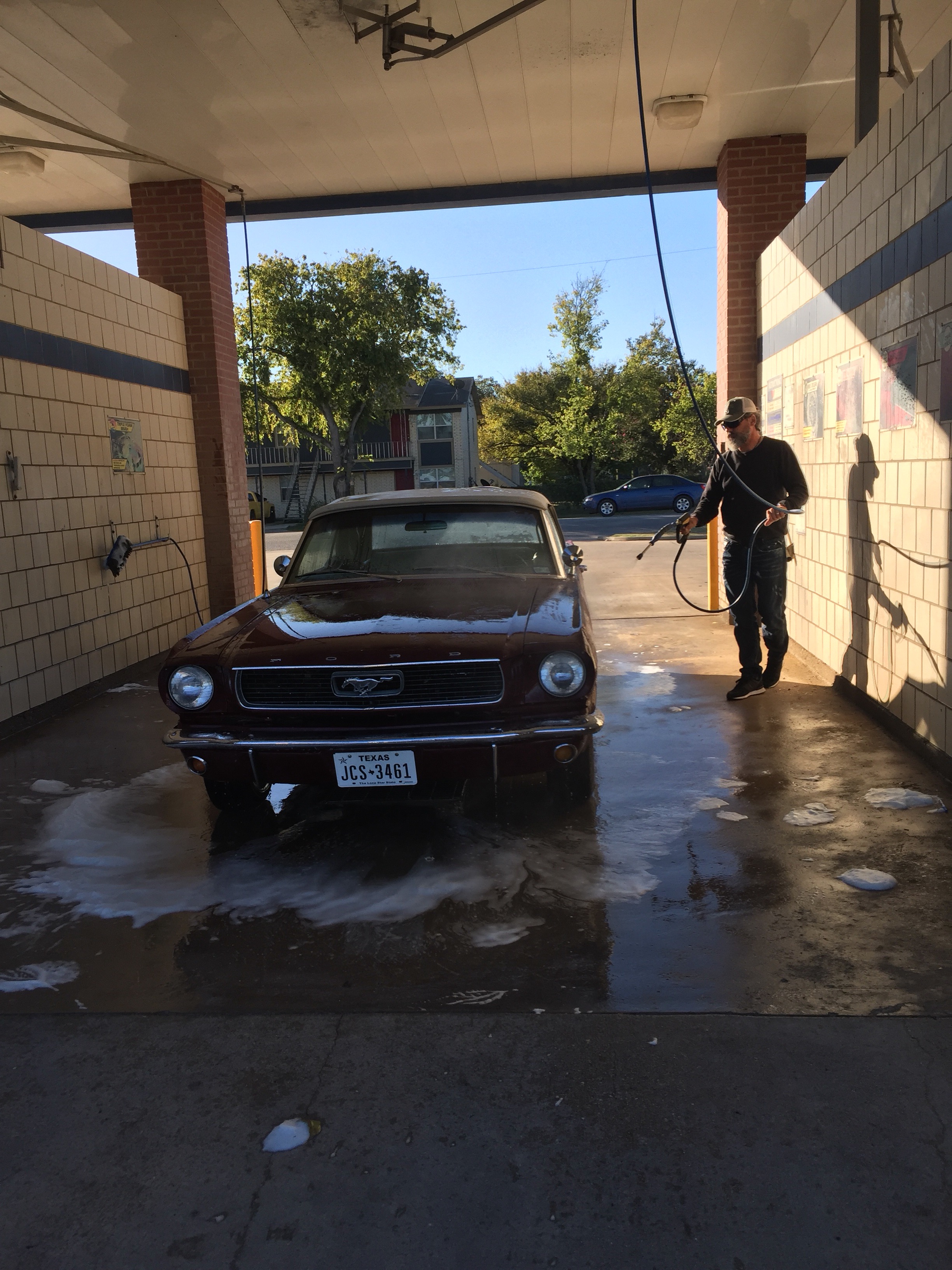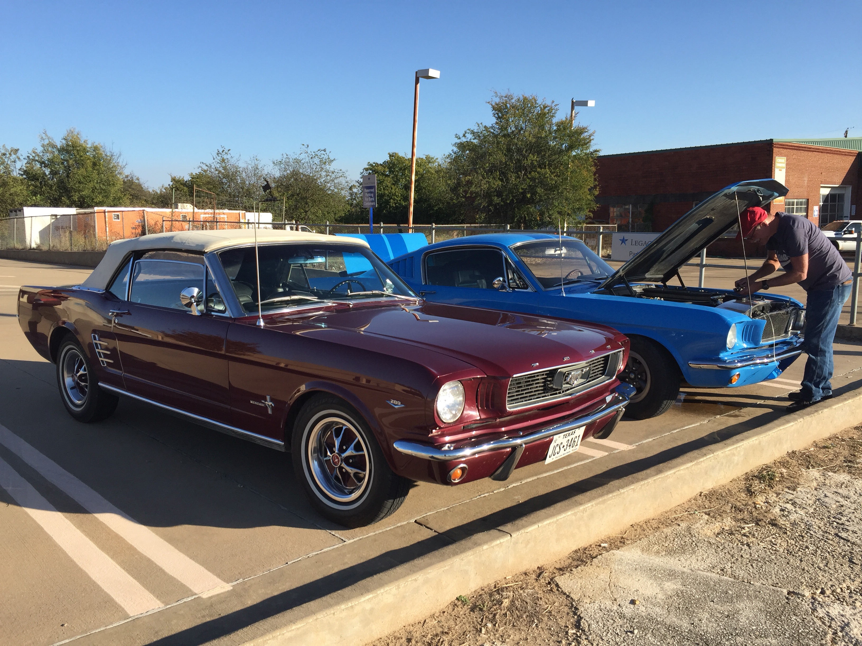 My very good friend Alan (whom I have never met in person before!) will be waiting there, and will bring us to Lampasas, where we will be based. Alan is taking good care of my car, a Vintage Burgundy 1966 Ford Mustang 289 C-code Convertible that I bought last February, and that he kindly brought home after putting 1300+ miles on the clock himself driving it from Grand Rapids, MI to Lampasas, TX.! The car is stored in his shop and within this time, he has been doing some maintenance for me, well, much more than that I would say.! The car is in pristine condition, inspected, insured and registered under my name, so ready to go.!