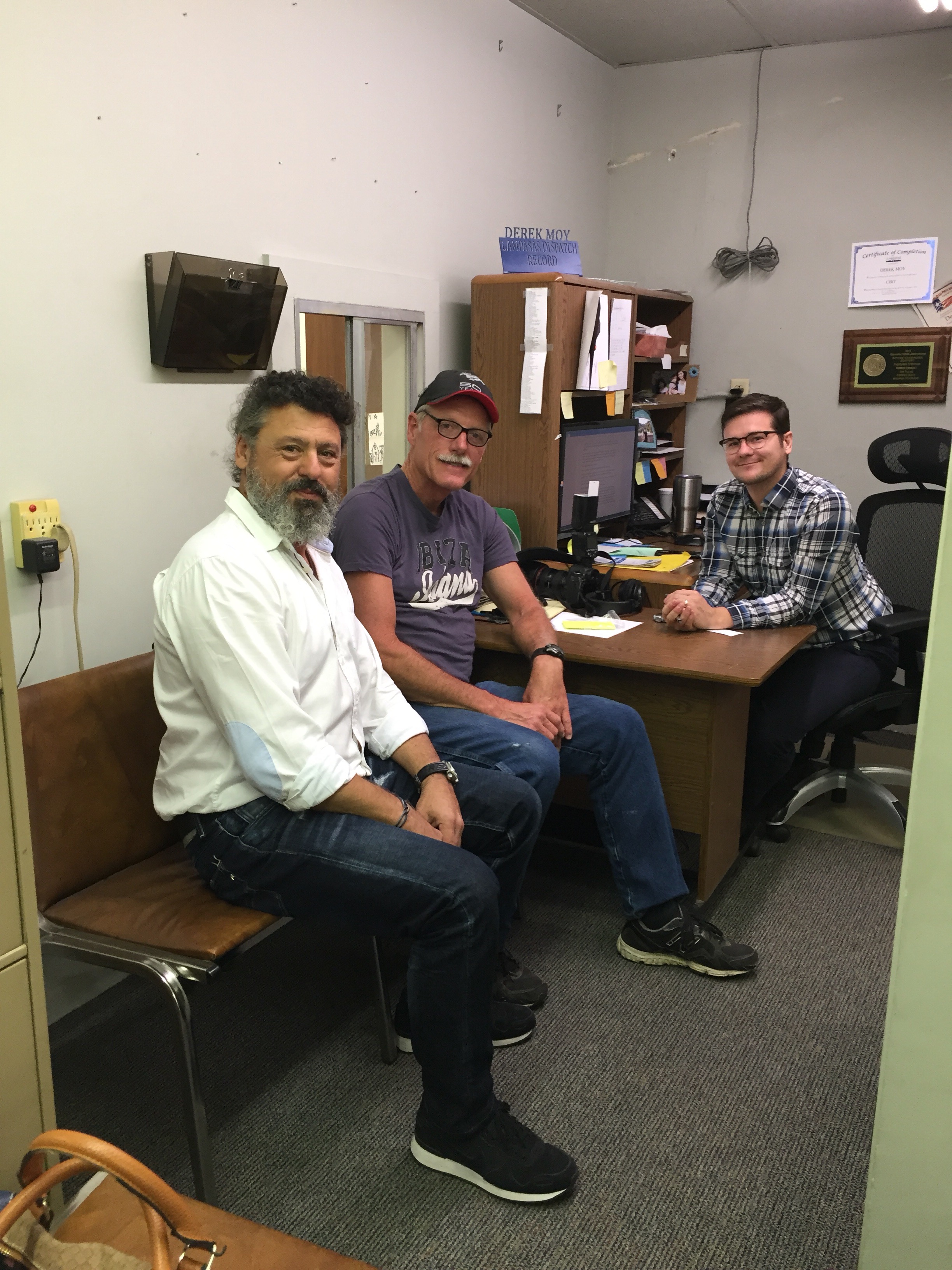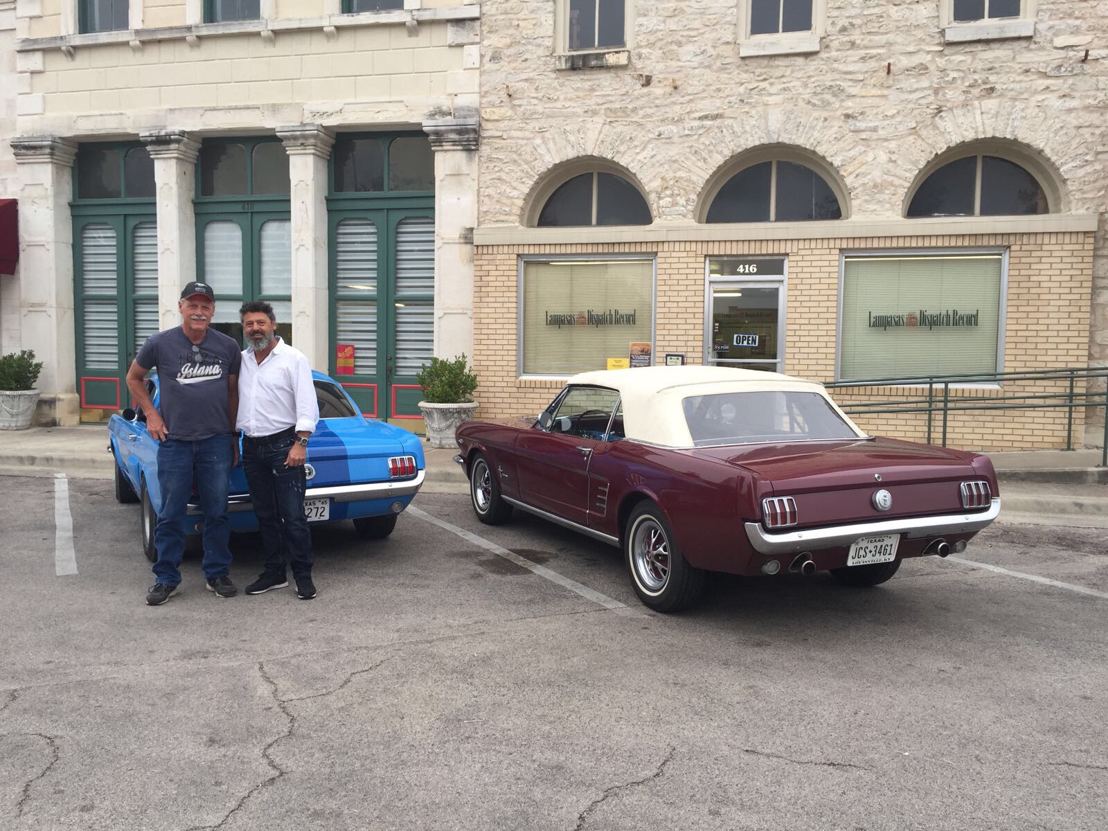 In front of the Lampasas Dispatch Record Newspaper before our interview with Derek